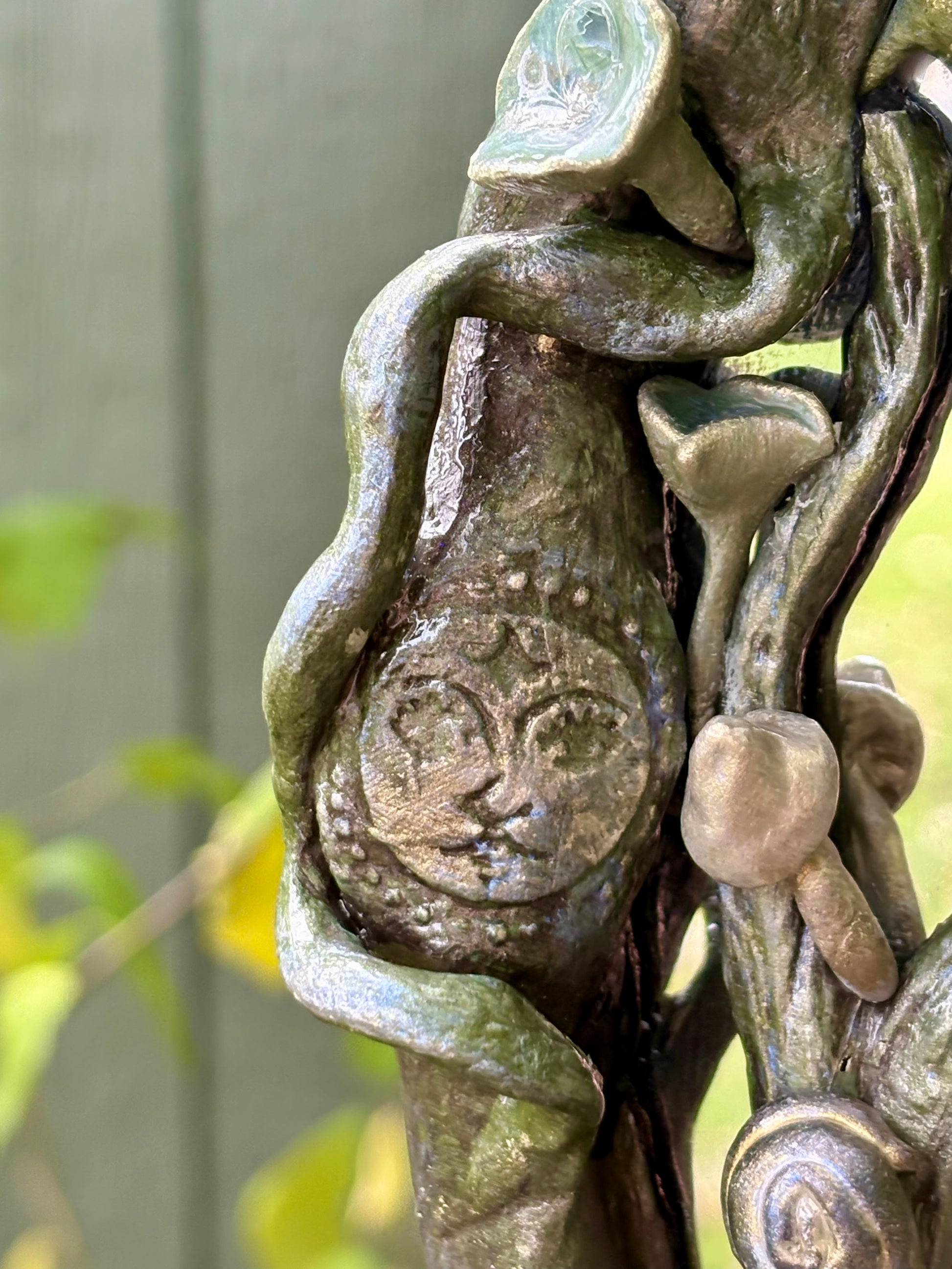 This hand sculpted and painted mirror seems to see into the Spirit of the Forest, catching light and shadows, not just showing your reflection, but connecting your roots to your ancestors.